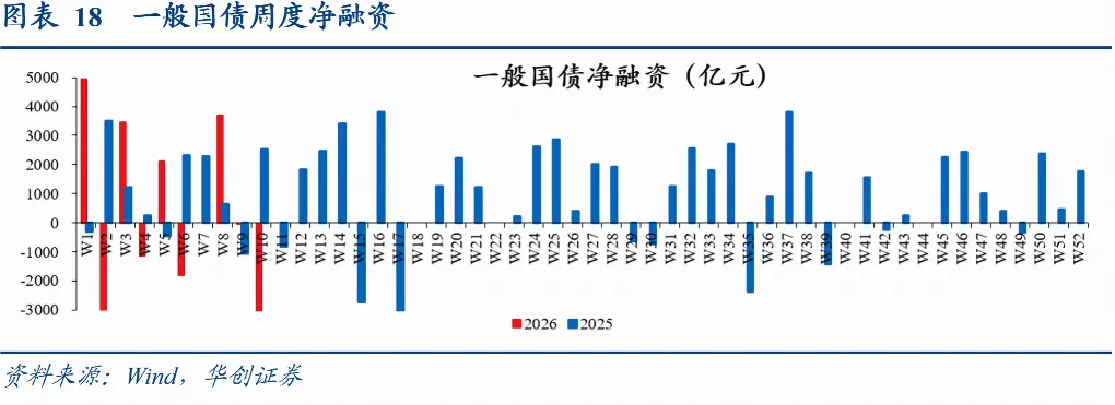 国债周度净融资更新:已公布3月9日当周国债净融资-3910亿;1-2月国债累计净融资8288亿,去年同期为9464亿。