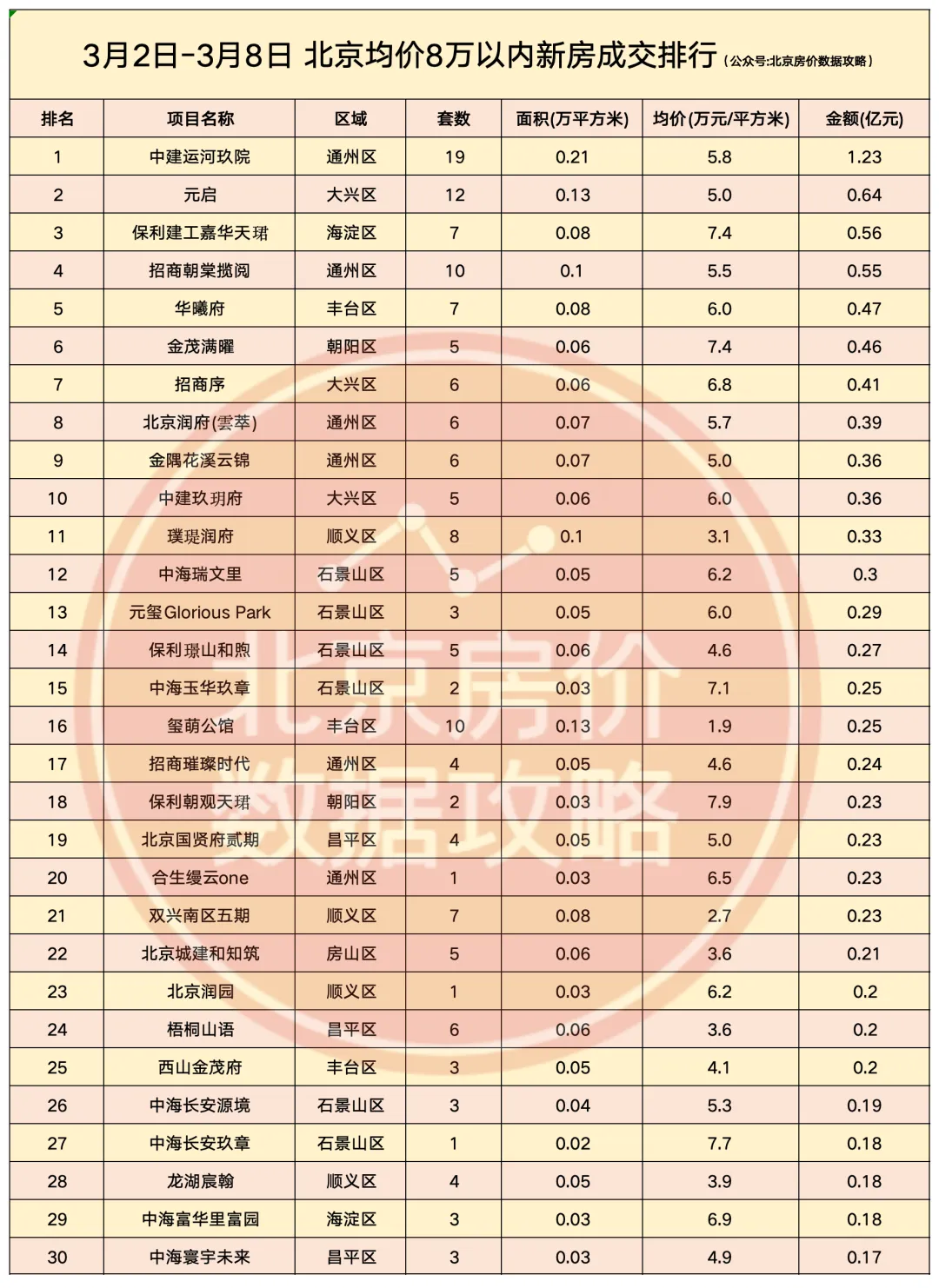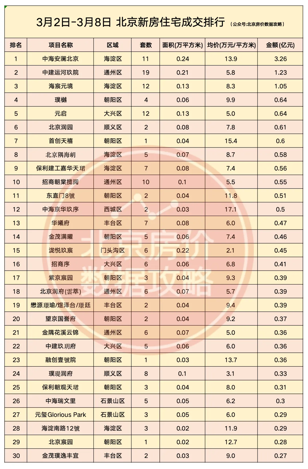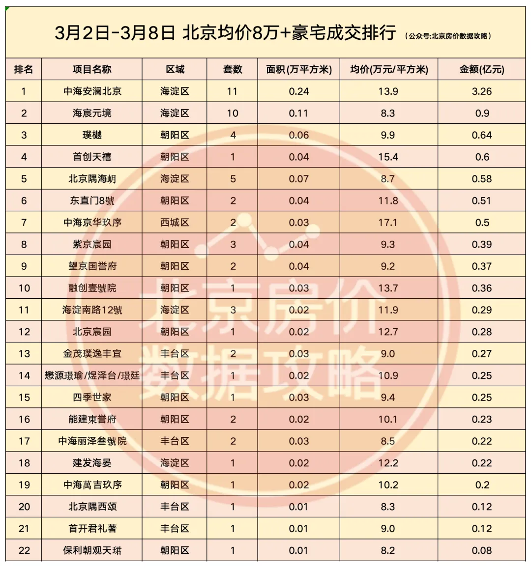 市场到底怎么样?还是建议大家自己多去售楼处跑跑,自己的感受最真。建议大家3、4月密切观察市场变化,理不清自己需求、不清楚什么时候上车合适、不会选房、想省钱的加饭总微信vfang10,全程帮你解决买房问题。中海安澜北京以3.26亿的网签金额,获得上周北京新房周度金额冠军;中建运河玖院以19套的网签套数,获得上周北京新房周度套数冠军。成交金额前三名分别是:中海安澜北京、中建运河玖院、海宸元境;成交套数前三名分别是:中建运河玖院、海宸元境、元启。--END--
