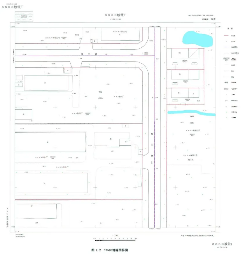 (4)地籍图上可表示行政村界线和名称,不注记行政区代码和邮政编码。
