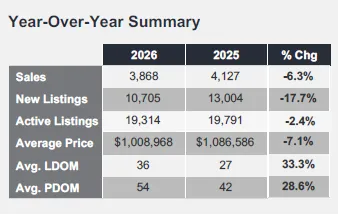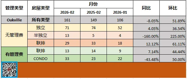 在上期的《最宜居的城市Oakville房产月报(2026-01)》的结束语里我说过:2026年一月开始就会有同比数据了!同时我也将环比一并提供出来,大家请继续关注!
