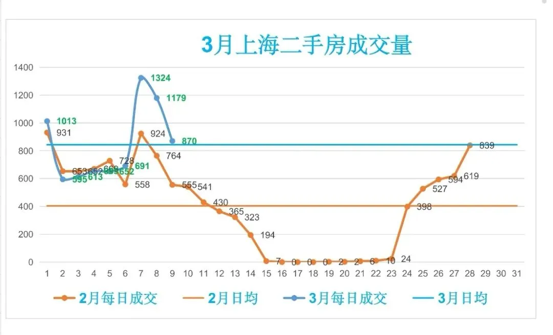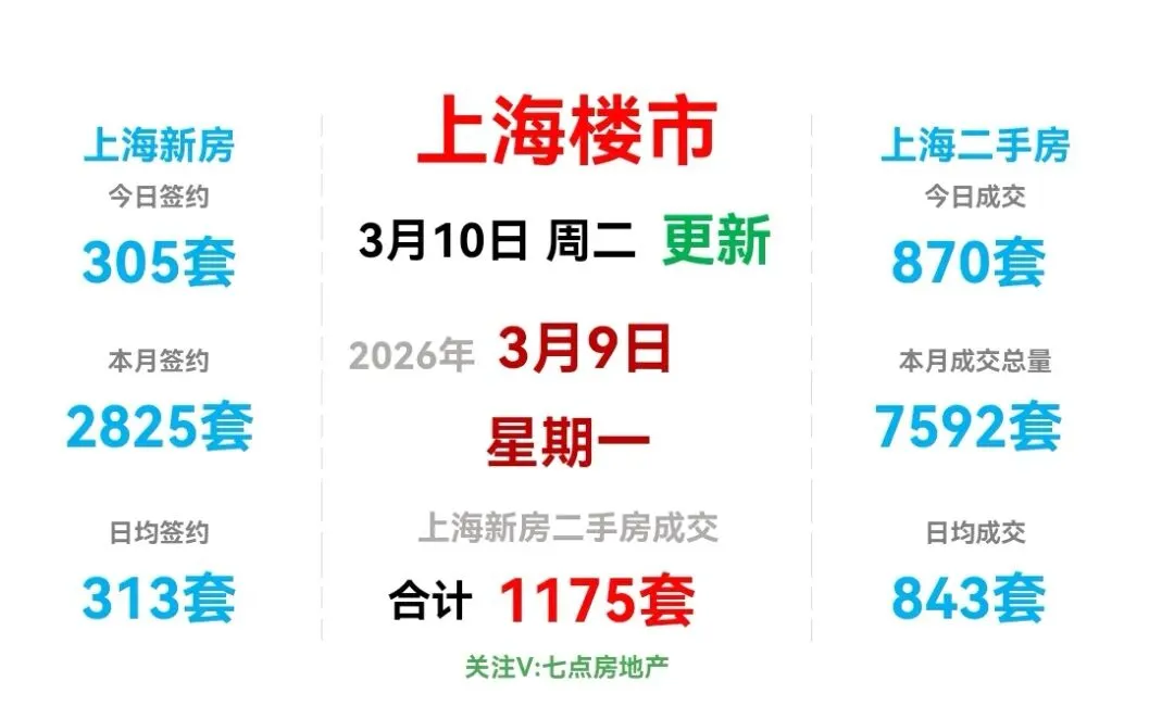 昨日(3月9日,周一),上海新房和上海二手房成交量合计1175套。