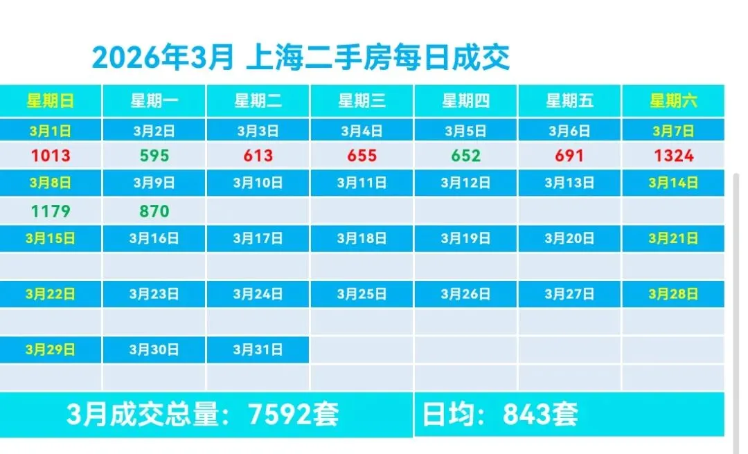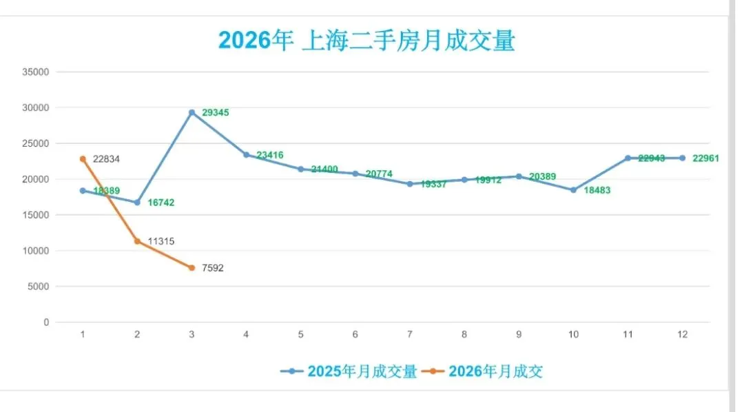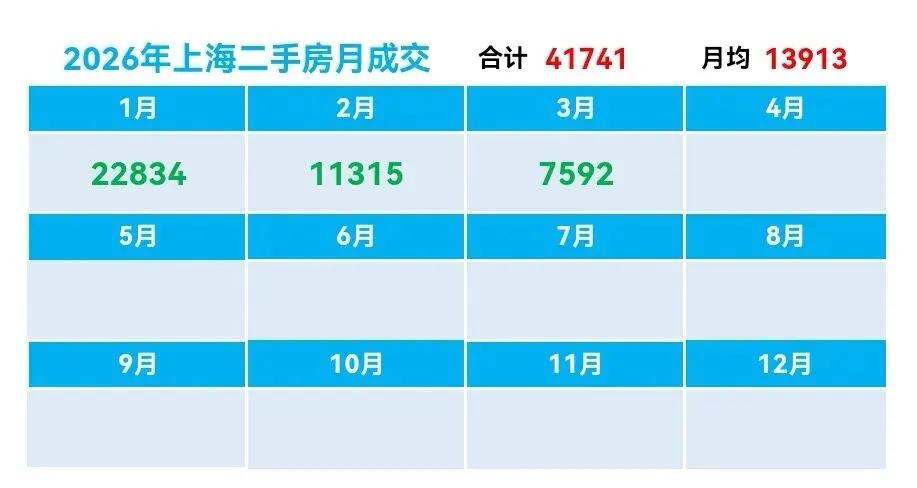 ♻️截止2026年3月9日,2026年上海二手房成交量合计41741套,月均21174套。