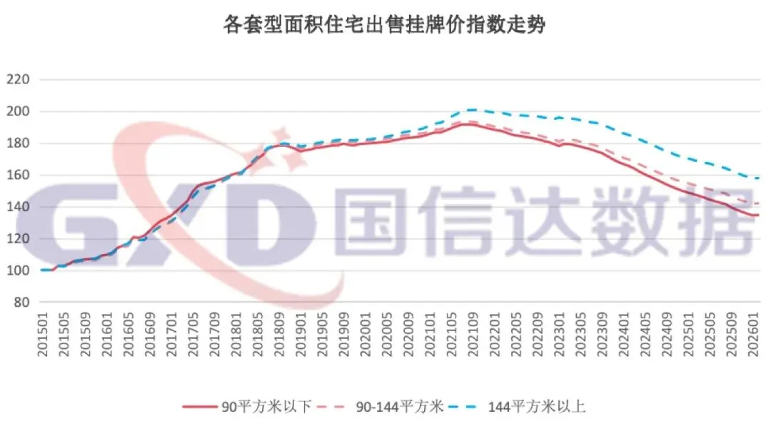 (4)各套型面积出售挂牌量、价指数