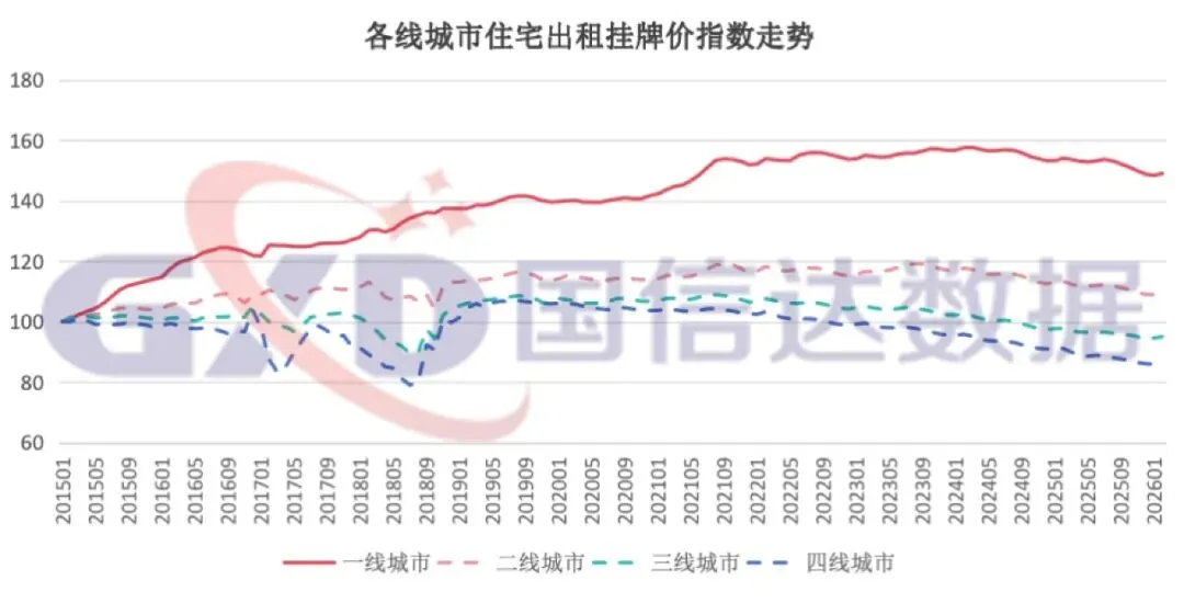 2026年2月份,全国住宅出售挂牌价指数环比上涨0.2%。全国地级以上主要城市中有181个城市住宅出售挂牌价指数环比上涨,有40个城市住宅出售挂牌价指数同比上涨。
