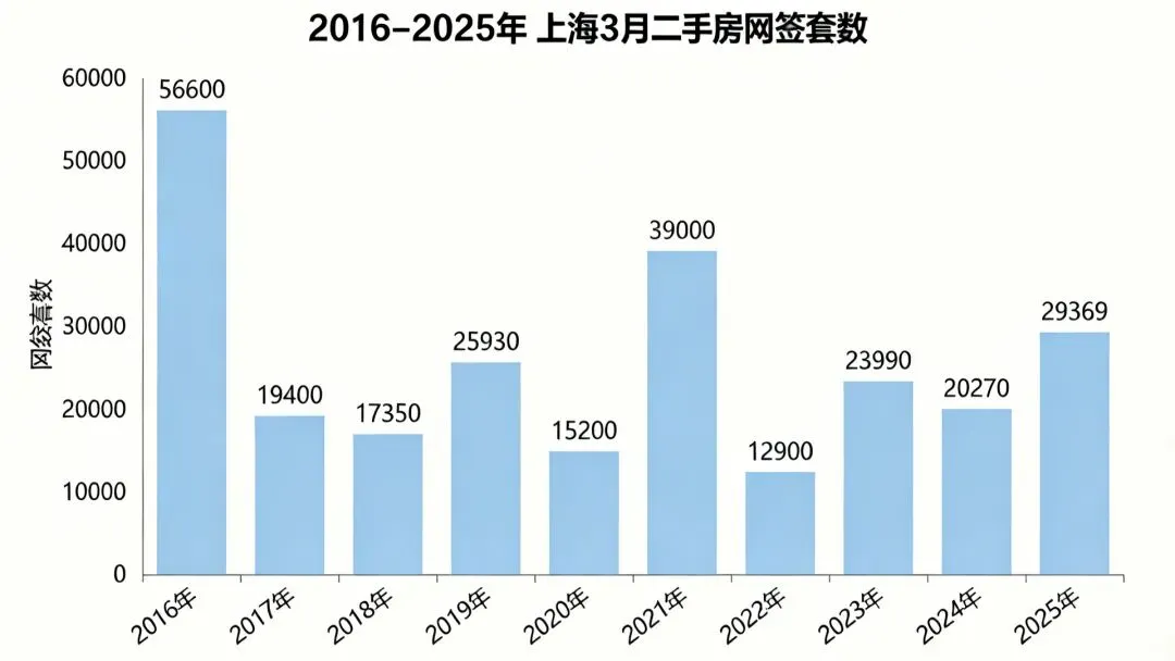看一下,从2016年到2025年,这十年每年3月份的二手网签数据: