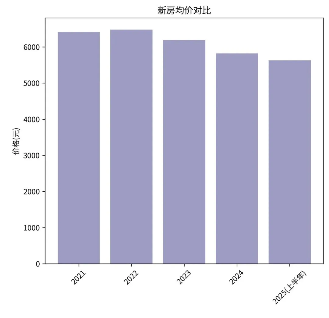 新房均价:从2022年高点(约6481元)持续回调至2025年(约5631元),累计跌幅约13%。关键信号是:2025年跌幅显著收窄。这表明市场在连续下跌后,价格正在寻找底部,而非无底线下探。