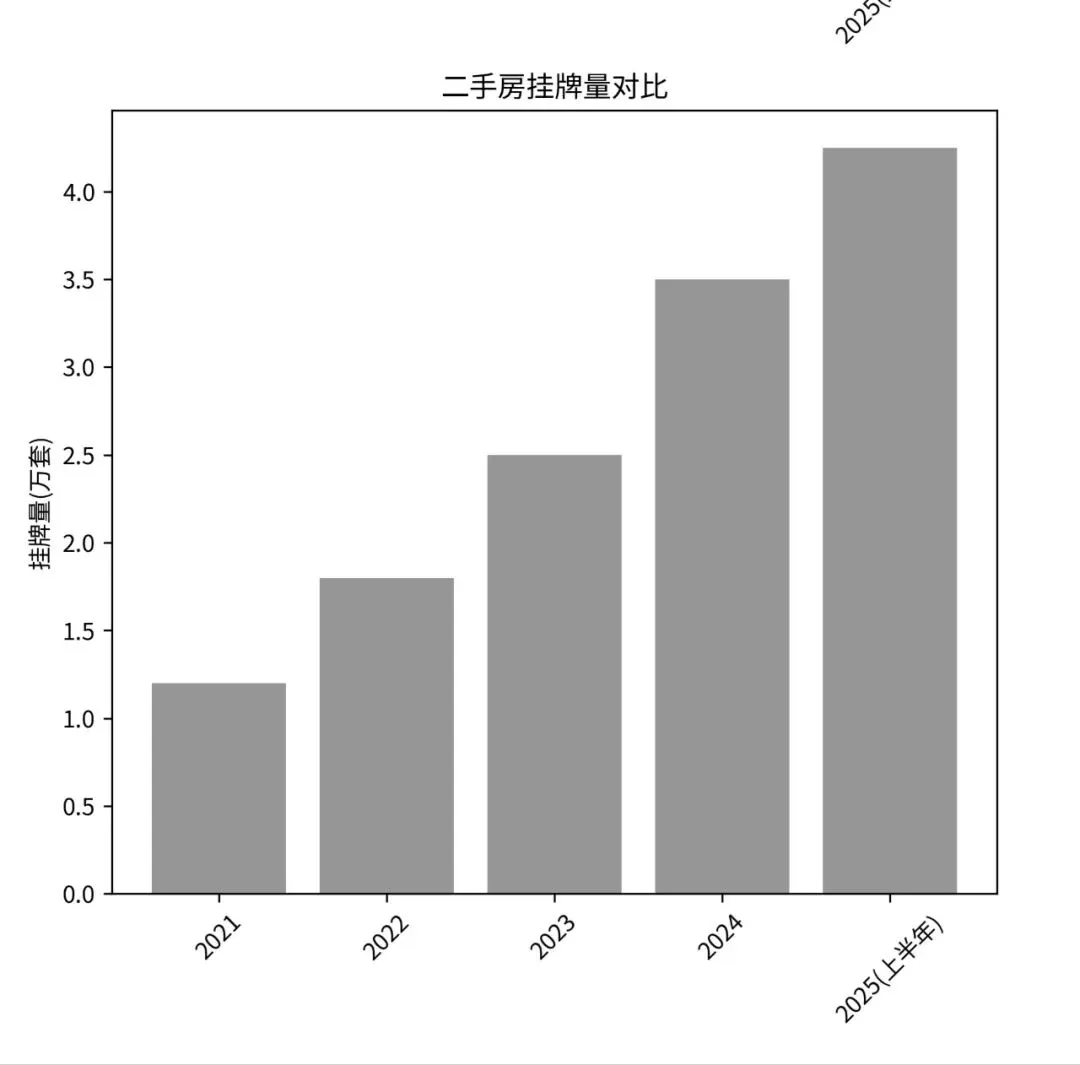 3、存量端:二手房挂牌量:5年间从约1.2万套激增至近5万套,翻了近4倍。这制造了巨大的存量供应压力。这表明,“老破小”丧失了流动性,成交周期延长,挂牌量长期积累导致。