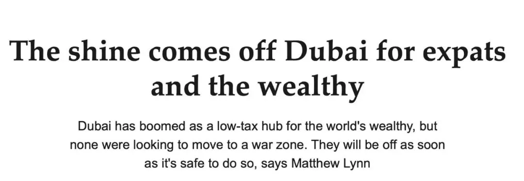 MoneyWeek评论指出,迪拜的创业型人口本身就具有高度流动性——这些人既然能离开原籍国选择迪拜,便同样可以再次离开迪拜,选择下一个目的地。