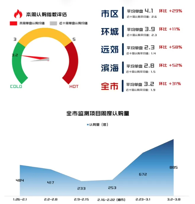 克而瑞数据有个小问题是,他会统计所有的认购套数,也就是说,当周如果有新盘开盘而且热销,就会表现短期冲高。但是从这两个新房的数据来互相印证,基本可以判断3.1日开始到上周末,新房市场有了回温。