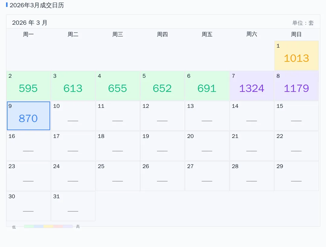 2026年03月成交日历