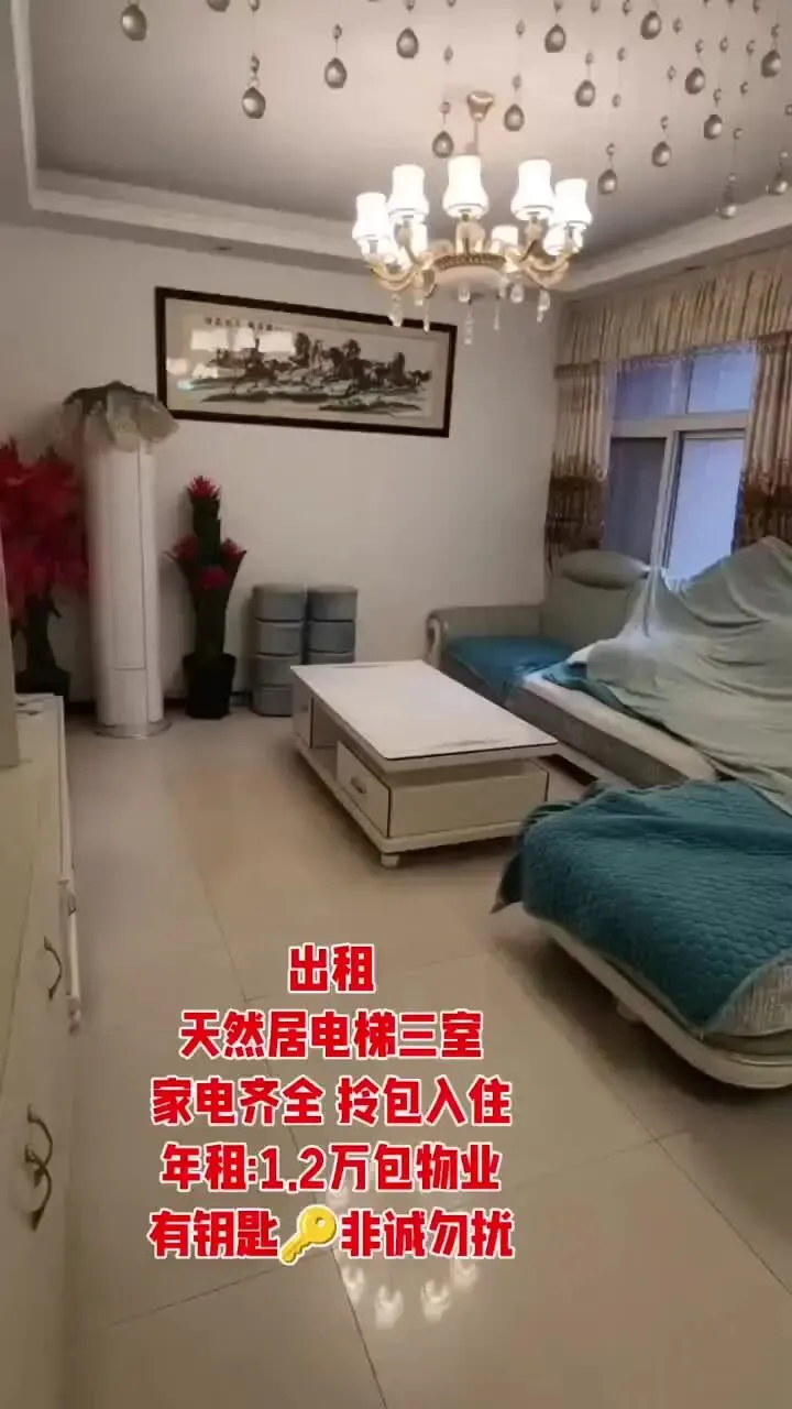 房屋详情:[出租 ] 出租 天然居电梯三室两厅一卫 家电齐全,拎包入住 年租:1.2万包物业 有钥匙??非诚勿扰 随时看房18838533368微信同号