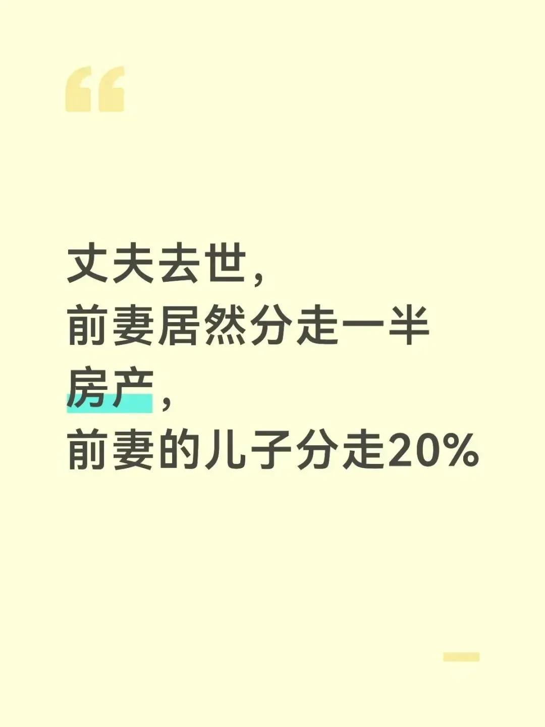 丈夫刚走,前妻直接分走50%房产,前妻的儿子再拿20%,现任手里只剩30%,连个安稳的家都快保不住了。