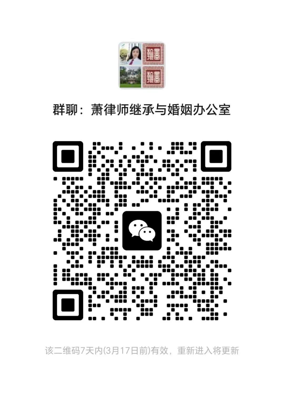 (扫描下方二维码,即可免费获取《家族传承风险评估问卷》,让《萧律师经继与婚姻办公室》为您的家族财富“把脉问诊”)