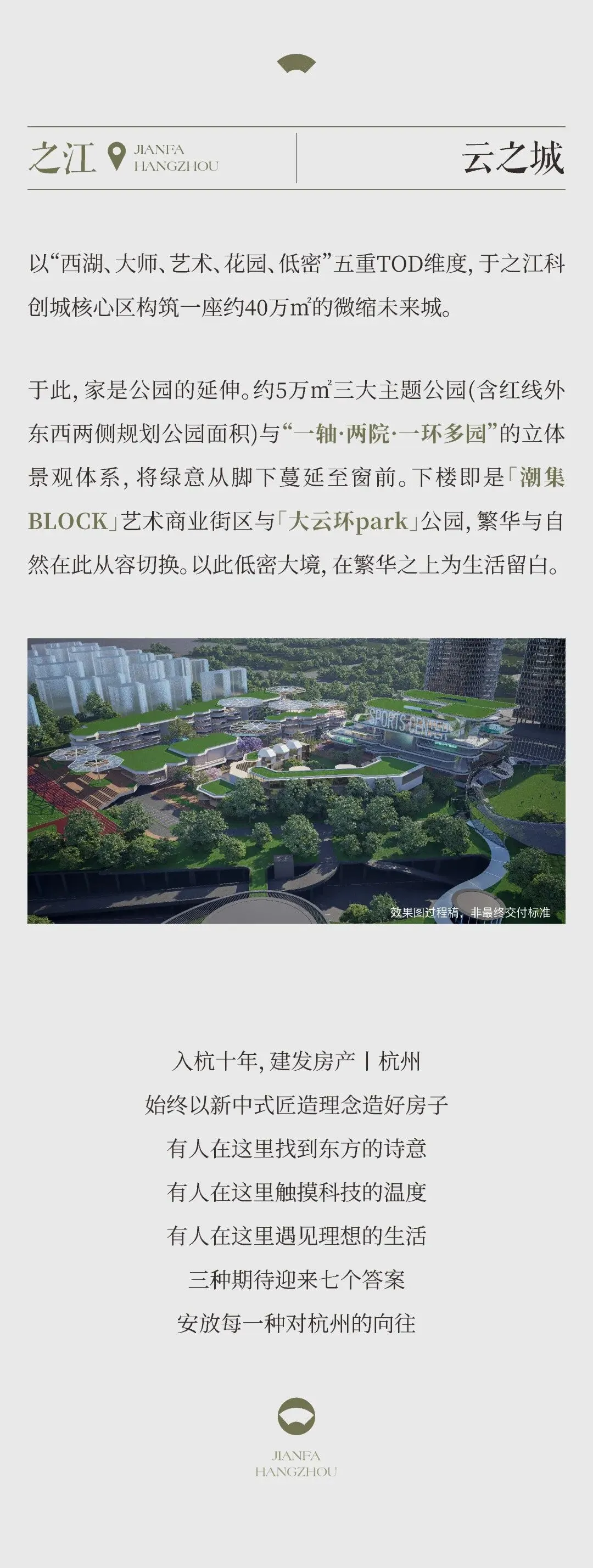 本资料为要约邀请,不作为要约或承诺,相关内容不排除因政府相关规划、规定及开发商调整而发生变化,买卖双方的权利义务以双方签订的《商品房买卖合同》为准;对项目周边环境、交通、教育及其他配套设施的介绍,旨在提供相关信息,不意味着本公司对此作出了承诺;本宣传不对学区及入学条件做任何承诺,学校划分及入学条件以政府相关部门最终批准方案为准。本资料效果图为过程稿仅供示意,存在后续修改可能,最终以双方签订的《商品房买卖合同》及实际交付为准;公司保留对宣传资料修改的权力,敬请留意最新资料;建发房产全国服务热线 400-846-3636。本资料发布日期2026年3月,有效期1个月。交付标准以《商品房买卖合同》为准,受制作批次、市场变化等限制条件或开发商不可控制的原因,开发商在保证以上建设质量的情况下可能进行更换品牌,如有变动,恕不另行通知。
