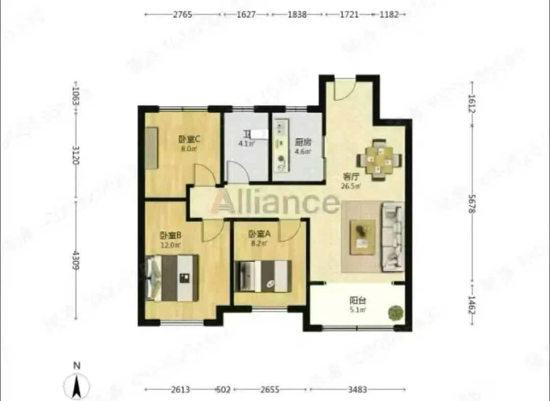 🏆 148㎡大三房两卫,南北通透,格局大气。