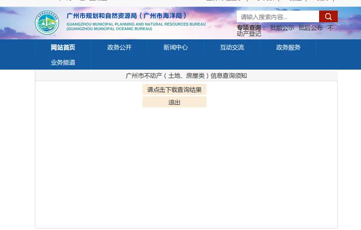 (http://ghzyj.gz.gov.cn/),在首页“系统专区-相关查询-广州市不动产登记资料利用”栏目选择“不动产(土地、房屋类)信息查询”功能进行在线查询。