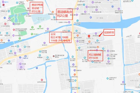 1、该标的附近有多条公交路线,比如:186路、沪松线、松江47路等公交线路,距离轨道交通9号线泗泾站约3公里。