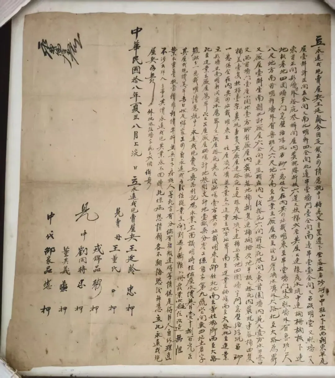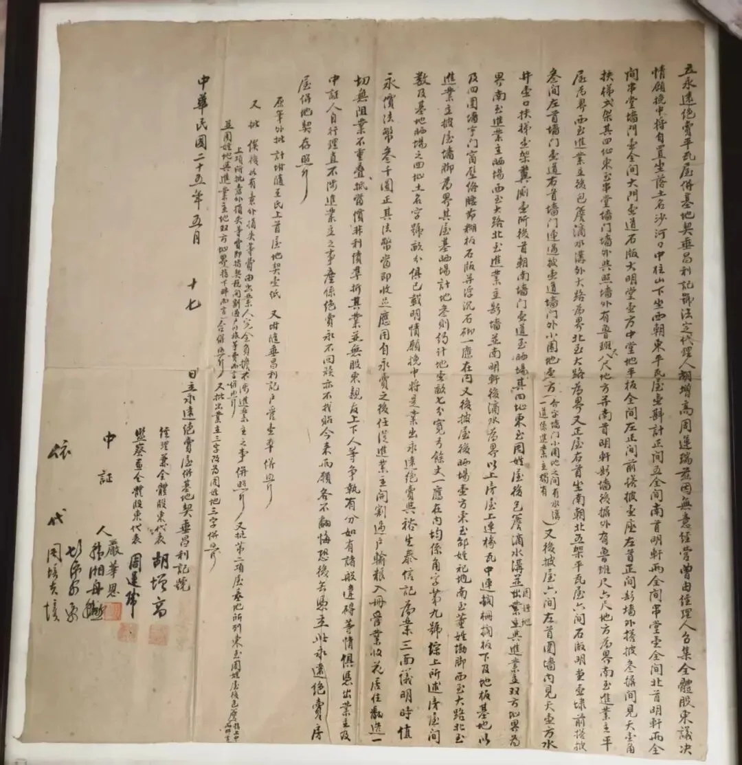 三份连续的契约,不仅记录了一处房产在民国时期的交易历史,也侧面反映了当时的经济变迁:从银元到法币(国币)的货币体系变化,以及商号、工厂作为市场主体在乡村经济活动中的活跃身影。同时,契约中对产权清晰、永不反悔的一再强调,以及完整原始档案的移交,都体现了传统商业社会中牢固的契约精神。