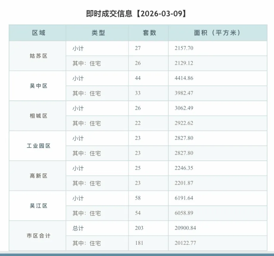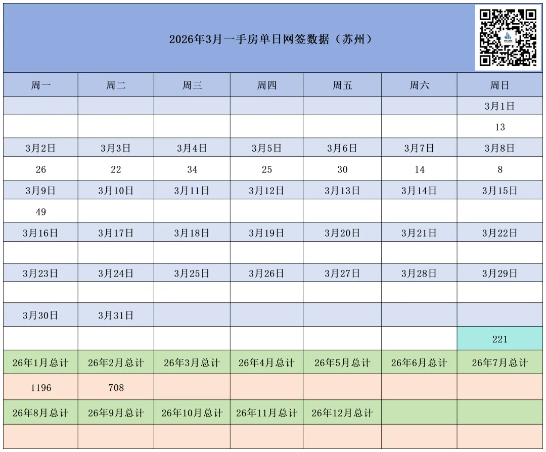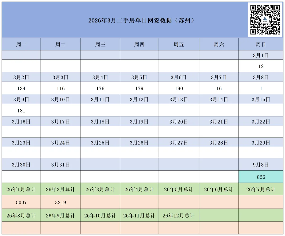 本月截至3月9日(周一),苏州六区住宅累计网签【1047套】,其中二手房累计网签【826套】、新房累计网签【221套】。