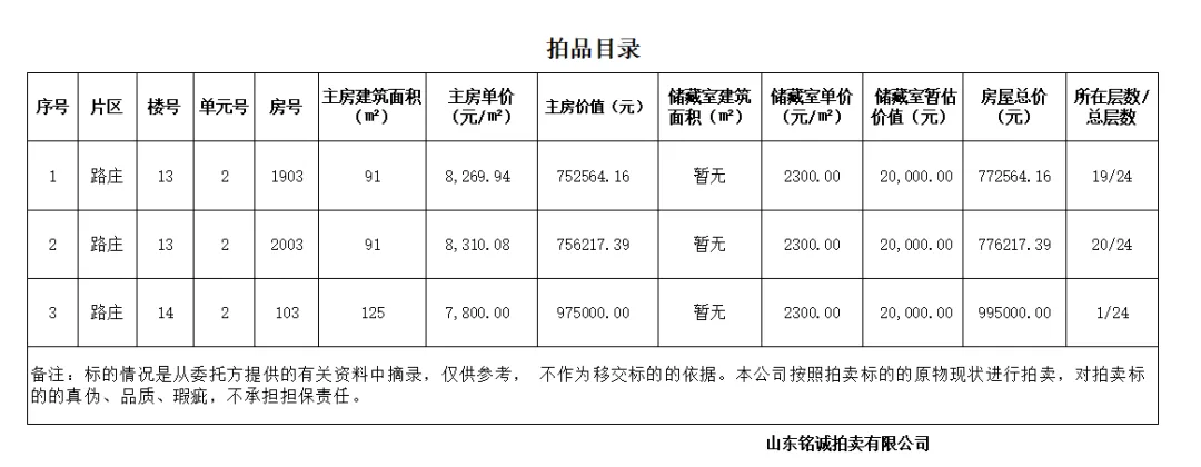 受委托,聊城市东昌府区路庄棚户区改造项目剩余房产3套项目通过网上公开竞价方式进行公开拍卖。现将有关事项公告如下: