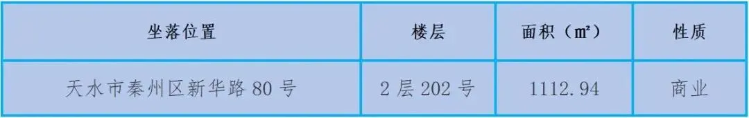 【房产转让】天水市秦州区新华路80号商业用房资产转让(招商推介)公告