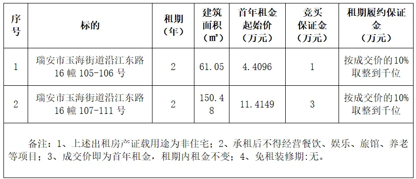 瑞安市玉海街道沿江东路16幢部分房产租赁权拍卖预公告