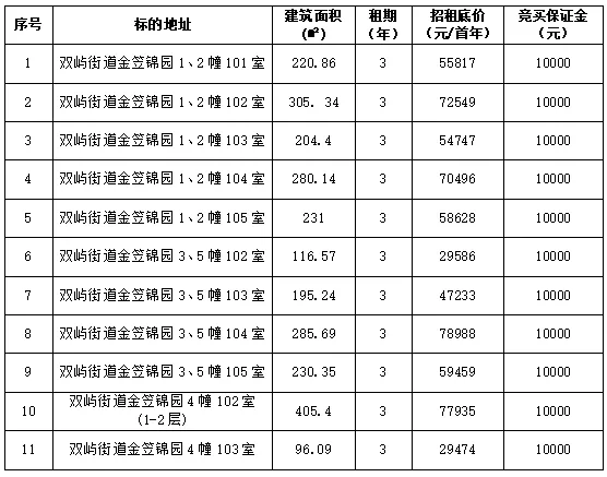 竞买保证金:(详见清单)