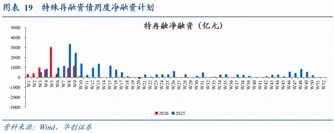 特殊地方债(用于化债、清欠等非项目用途)发行计划更新:已公布3月9日当周特殊地方债计划82亿,其中特殊再融资债净融资(用于化债)82亿,特殊新增专项债发行(用于化债、清欠)0亿;1-2月特殊再融资债累计净融资6645亿,去年同期为6713亿;1-2月特殊新增专项债累计发行946亿,去年同期为805亿。