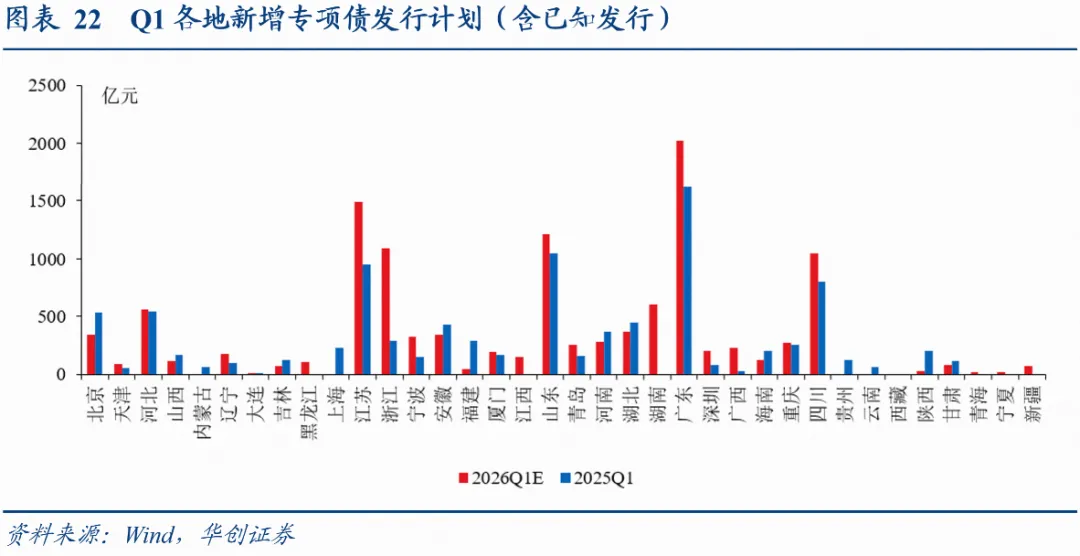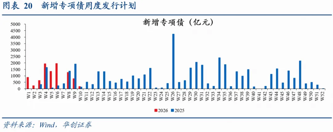 新增地方债发行计划更新:3月9日当周计划新增发行地方债371亿,其中一般债194亿,专项债177亿;截至3月6日,吉林、上海等30省市披露了2026年3月新增专项债发行计划(含已知发行)3708亿(2025年同期,已披露地区实际发行3575亿),披露了26Q1新增专项债发行计划共11932亿(2025年同期,已披露地区实际发行9316亿);1-2月新增专项债累计发行8242亿,去年同期为5968亿。