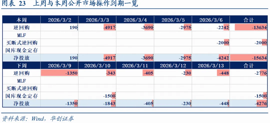 截至3月6日,DR001收于1.3194%,DR007收于1.4149%,R007收于1.4920%,较2月28日环比分别变化-2.55bps、-6.56bps、-3.72bps。本周净回笼资金15634亿,下周到期资金4276亿。
