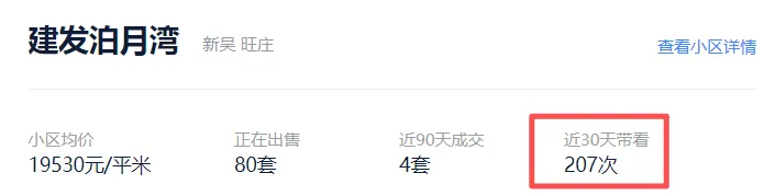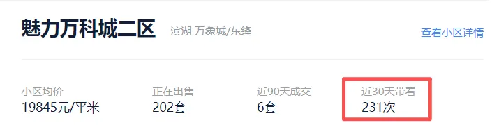 以经开区的魅力万科城二区为例,近30天带看231次,日均7组客户踩盘,周末集中看房的更是从早排到晚。位于新吴区的次新房小区建发泊月湾同样火爆,近30天带看207次,看房客户一波接一波。梁溪区的五星家园,作为无锡口碑非常好的安置房小区,凭借近地铁、医院、学校、商超的优越地段以及亲民价格,近30天带看103次。太平洋城中城天一公馆,一天成交3套!建面约41.7-62.99㎡一室一厅户型,有毛坯、有精装,最短成交周期5天,带看一次便直接成交。