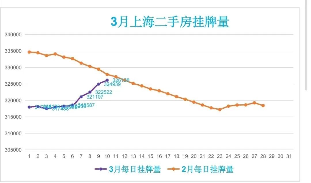 🏠昨日(3月10日,周二)挂牌326128笔,较前一日增加1189笔,日均挂牌320307笔,约32.03万笔,挂牌与实际成交比378:1,去化周期约12.6个月。