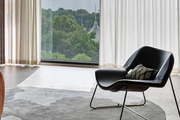 在客厅里游移着,临窗的地方,一张黑色皮革的椅子,吸引了我们的瞩目了。设计师Amy告诉我们,这张椅子的设计出自一位瑞士设计师之手。这张椅子,它符合了勒柯布西耶所提出的人体工程学原理,在将舒适的坐感,与优雅从容的造型的结合之后,就构筑了客厅里一道别具一格的风景线了。自从埃及人发明了椅子之后,椅子就一直是设计师们争相设计的单品了。这张椅子,将流线型作为了基础,以优质的金属作为饿了支撑,在细细的金属之中,让这张椅子绕具了现代设计的美学哲思,也满载着Bella对于生活的美好希冀了。毋庸置疑,这张椅子,它一定是客厅里,一处不可或缺的元素了,它转译这个家的雅致韵味了。