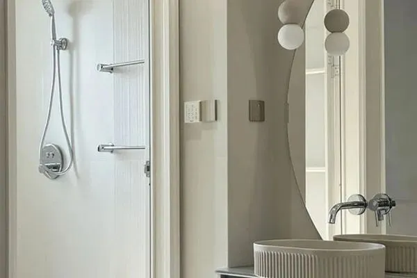 来到了家的卫浴间。这间卫浴间的面积适中。设计师Amy在此,以白色作为了主色调。在精妙的白色洗手台上方,是光亮的梳妆镜。在将干湿分离之后,整个卫浴间绕具了现代简约设计的淡雅情致了。当柔雅的水流,慢慢流出,轻轻洗去了身上的负能量,水经过了身体的每一寸肌肤,让Bella的身心压力得以释放。而馥郁芳香的精油,又让Bella松弛惬意,让她在洗浴之间,重获新生,这间卫浴间,无愧是家最为私密,放松的静谧空间了。整个卫浴间也变得温润如玉般舒适了,它续写了家的舒适感,也标记了精致的现代生活的痕迹了。