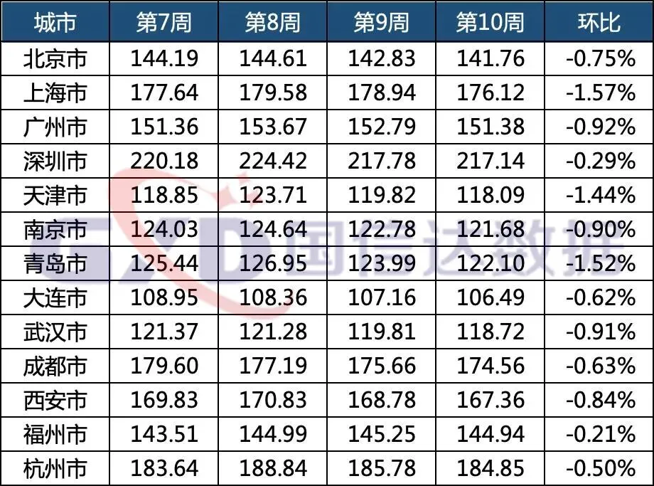 北上广深四个一线城市,北京市挂牌价指数环比下降0.75%,上海市挂牌价指数环比下降1.57%,广州市挂牌价指数环比下降0.92%,深圳市挂牌价指数环比下降0.29%。