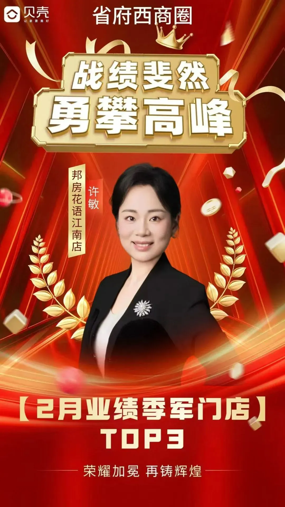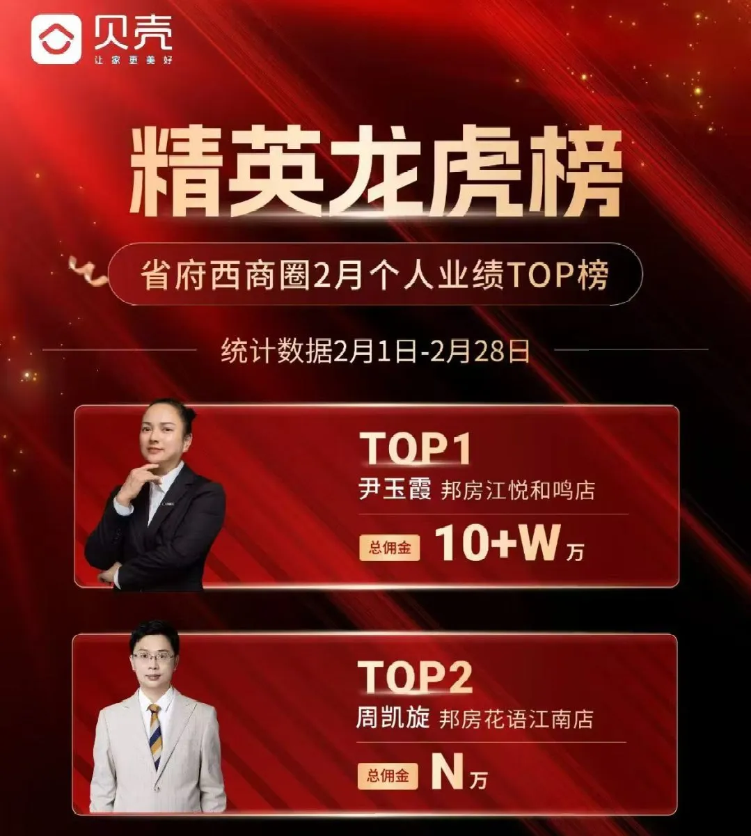 从贝壳省府西商圈二月份的业绩情况来看,第一名是邦房小青蛙江悦和鸣店,第三名是邦房小青蛙花语江南店。