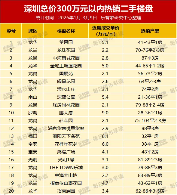 一是外围成熟板块的“性价比之王”。比如龙华的苹果园,41-43㎡的1房户型,成交单价约5.1万/㎡,总价210万就能拿下;龙岗的龙珠花园,70-76㎡的2-3房,单价仅2.2万/㎡,总价160万左右,周边有地铁3号线、大型商场,生活便利;还有滢水山庄、中海康城等,都是“低总价+成熟配套”的典型,适合首套刚需。