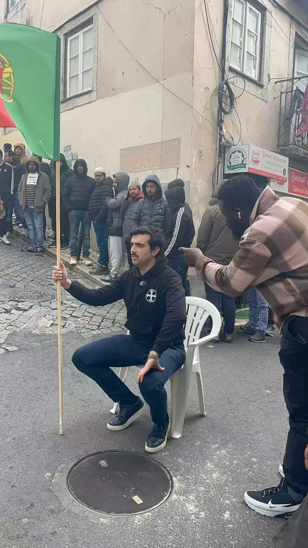 有个葡萄牙人跑到里斯本移民聚集区,扛着国旗挑衅。