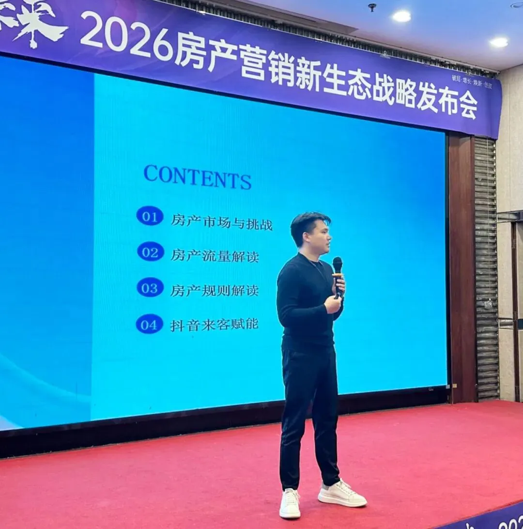 随后,贾赛强(抖音生活服务社区与房产石家庄CSP负责人)带来平台视角的深度解读。他从抖音生态切入,剖析流量趋势与政策导向,为现场嘉宾提供了极具含金量的“官方风向标”。