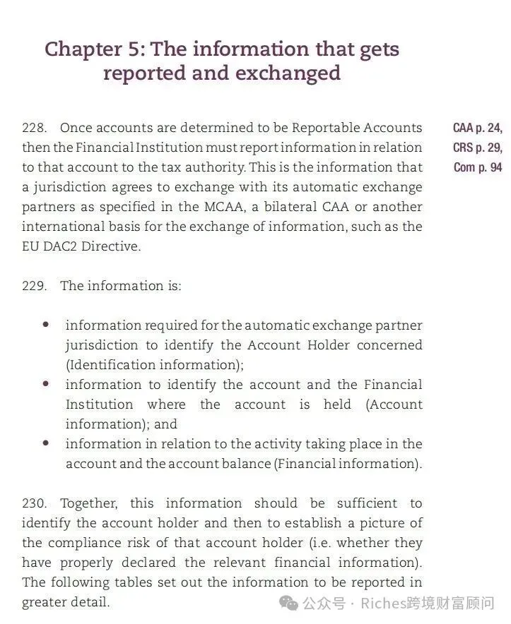 根据OECD《CRS实施手册》,金融账户以下信息会被报告: