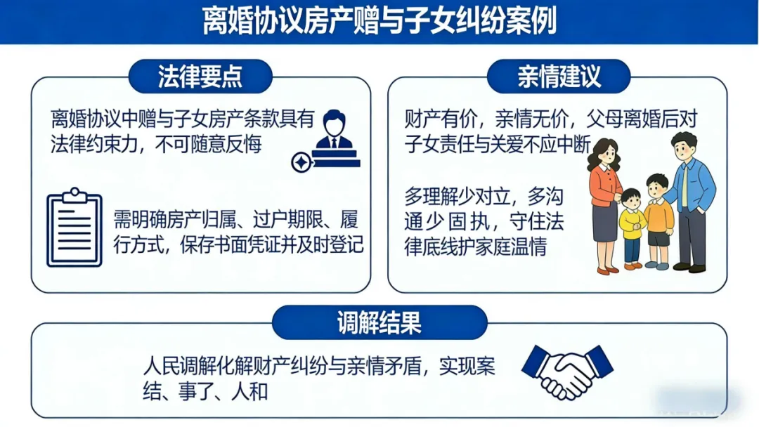 由于张某对父母离婚及房产约定的细节了解有限,调解员建议其查找母亲遗物中的书面凭证。随后,张某在遗物中找到当年法院出具的离婚调解协议书,协议书明确载明父亲自愿将其名下房产赠与婚生女儿张某。