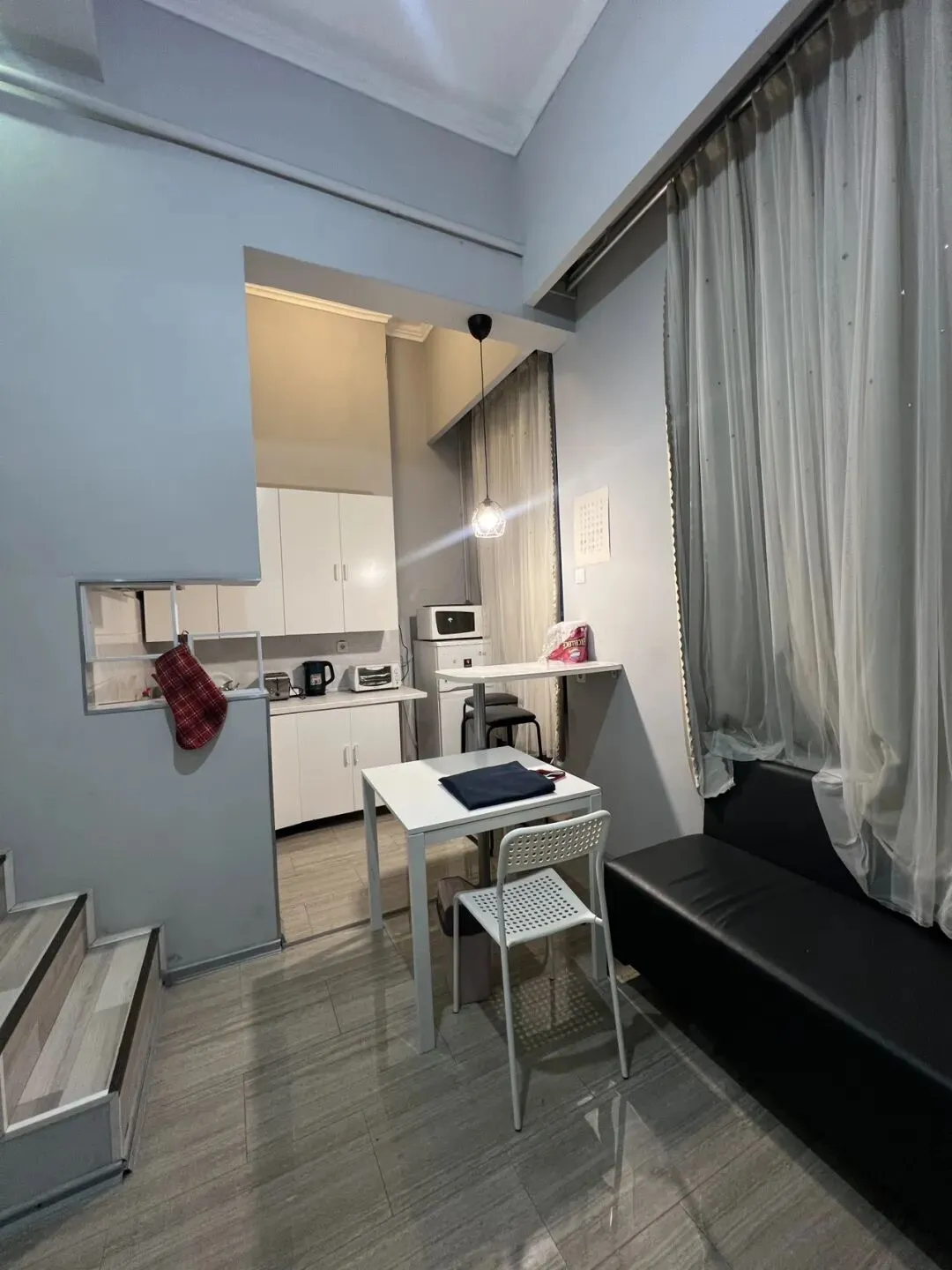 ☘️户型:这是大个公寓,改成的4个小单身公寓。此单身公寓的格局是:阁楼上是卧室,楼下厨房,餐厅一起,卫生间和浴室一起,设备齐全。