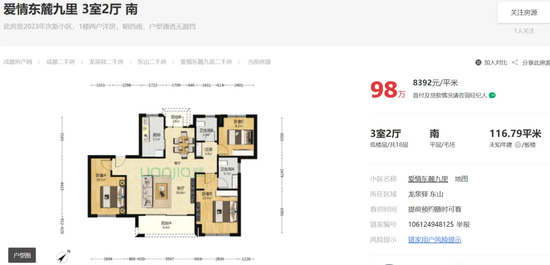 2026年03月07日,【那坊归心】成都成华龙潭寺存量房(二手房)万科锦园建面106平套三报价178万,是否适合90后?