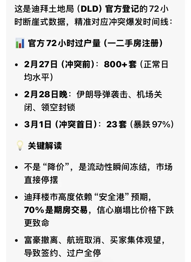 >迪拜房产日均过户量从800多套直接跌到了23套,跌幅超过97%.