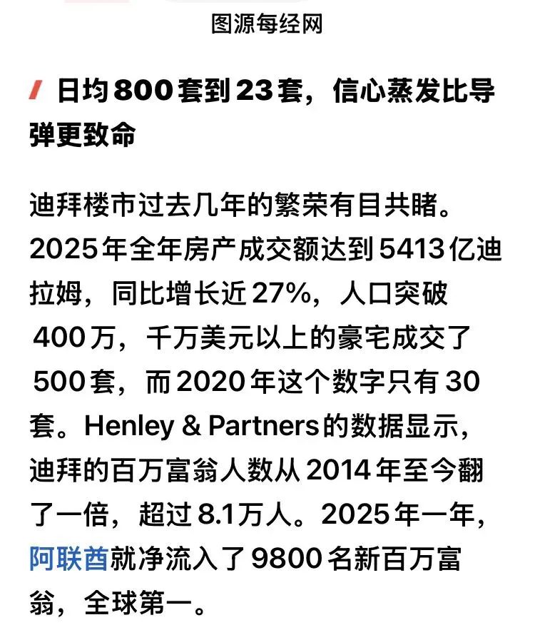 迪拜房产日均过户量从800多套直接跌到了23套,跌幅超过97%.