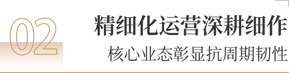完成首批客房翻新,落地近零污染精装修技术,全力拉升客户体验,平均房价同比提升5.8%达2,260元/间/晚,RevPAR同比增长0.9%,在奢华酒店竞争群组中保持领先地位。年内首获「米其林一星钥酒店」,旗下愉粤轩蝉联2025广州「米其林一星」餐厅,佰鲜汇荣膺2025广州「米其林指南入选餐厅」,品牌价值持续凸显。