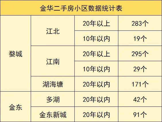 但买房人对于这些二手房的挑选也都有自己的想法,并不是所有二手房都能被人光顾。有超80%的人在买二手房的时候,都要选择房子比较新一点,房龄不能太老。而20年以上的二手房,若是没有强属性的支撑,比如学区、江景等,就会出现很少有人会去看这样的二手房,久而久之就会出现0带看的情况。在老姜的统计里发现,金华20年以上的老小区还真不少,简单做了一下统计。这么多二手房小区,就代表着数以千计想要卖房的二手房业主。当需求不变,而二手房业主不愿意卖了,后面二手房市场的量价天平就会向买卖双方的中间端倾斜。但现在买方和中介针对二手房卖家单方面压价的恐慌行情即将结束,二手房市场逐渐回到了理性的博弈。但最近一段时间,老姜是不是都希望金华的房东们尽量不要《割肉卖房》。1、该割肉卖的业主基本都已经卖出去了,房价下跌到现在很多业主也逐渐接受了。2、现在这个行情,卖房说不定都还要倒欠银行钱,也没必要再割肉继续卖了。3、上面刺激政策密集出台,给不少业主心理按摩,期待房价能够反弹。尤其是手上有好房子的业主,现在就是要静待市场的春暖花开。市场上的情绪在一点点转变,也让房地产的悲观情绪没有那么严重了。即使是拐点到来,也并不意味着所有的二手房小区都实现了止跌。