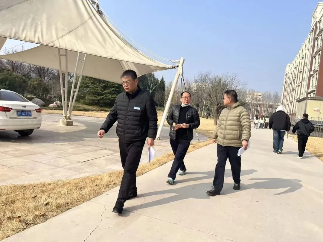 实地参观,感受校园风貌。在我校基建处曹文龙处长的陪同下,房管局领导一行首先参观了我校的教学楼、实训室及体育馆。参观过程中,曹处长详细介绍了我校的办学历史、学科特色以及在建筑学、城市规划等方面的人才培养和科研成果。房管局领导对我校优美的校园环境、先进的实验设施以及师生们积极向上的精神风貌给予了高度评价。