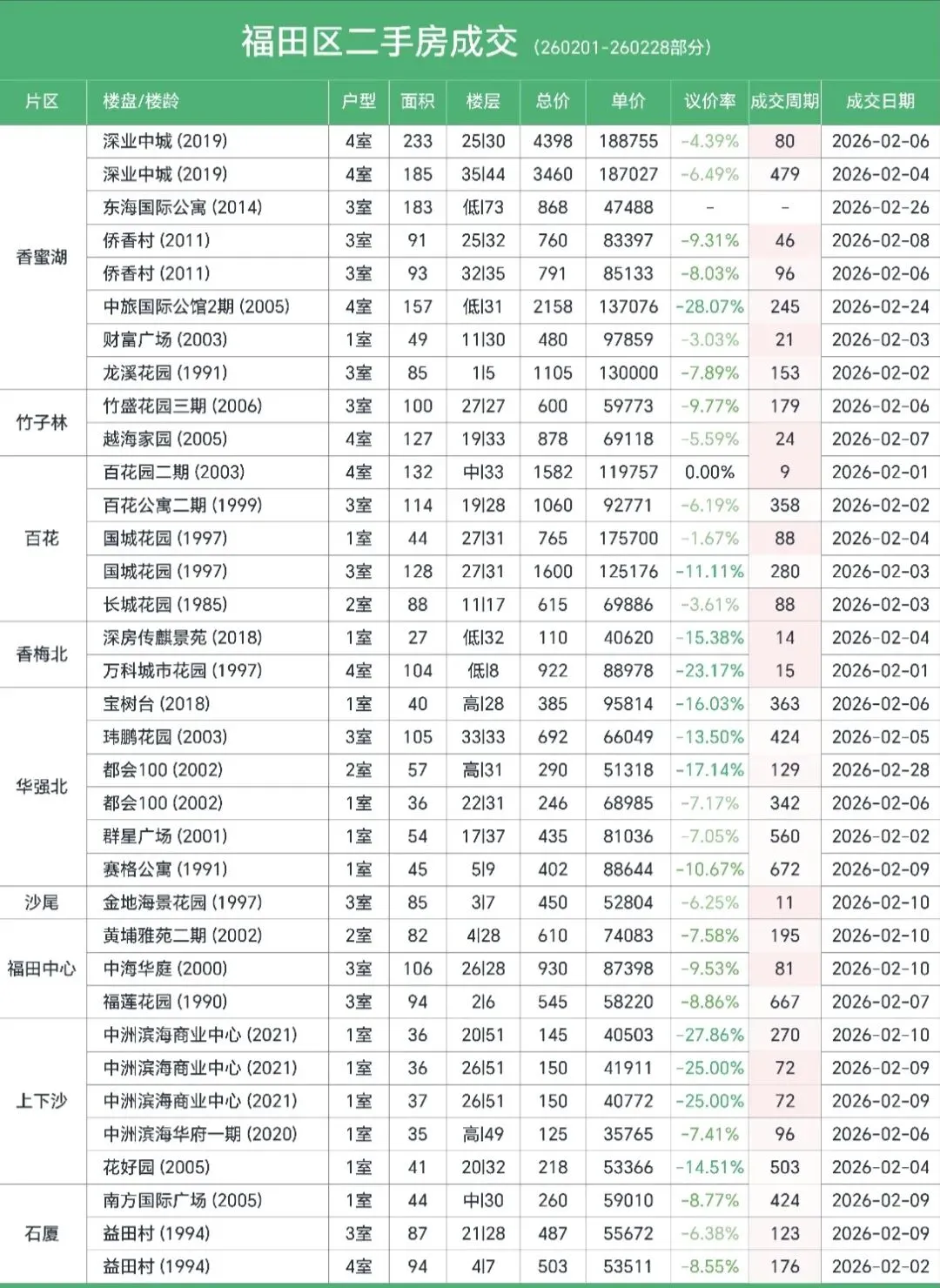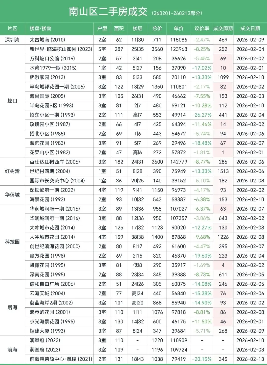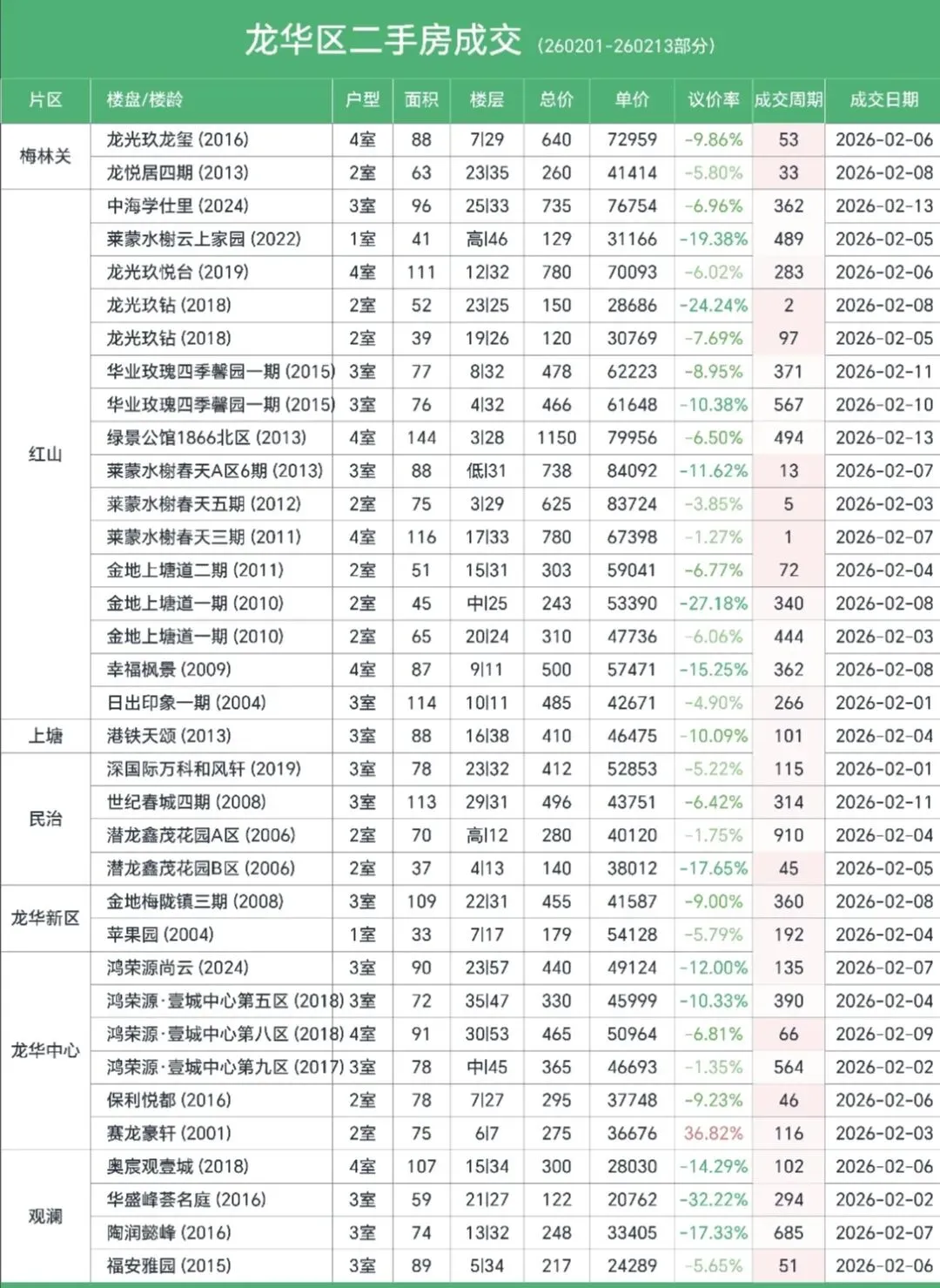 整理了深圳南山、福田、宝安、龙华、罗湖、光明、龙岗7个区域的二手房真实成交情况,从成交价、议价空间、成交周期三个维度,给大家做一个直白的市场分析。
