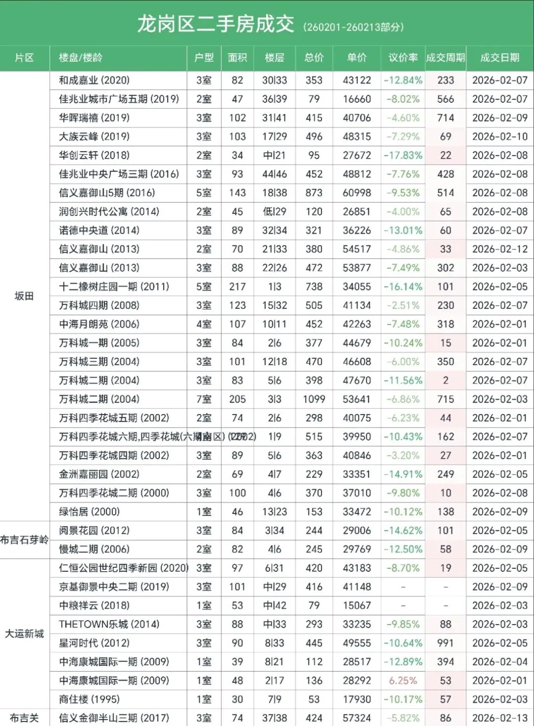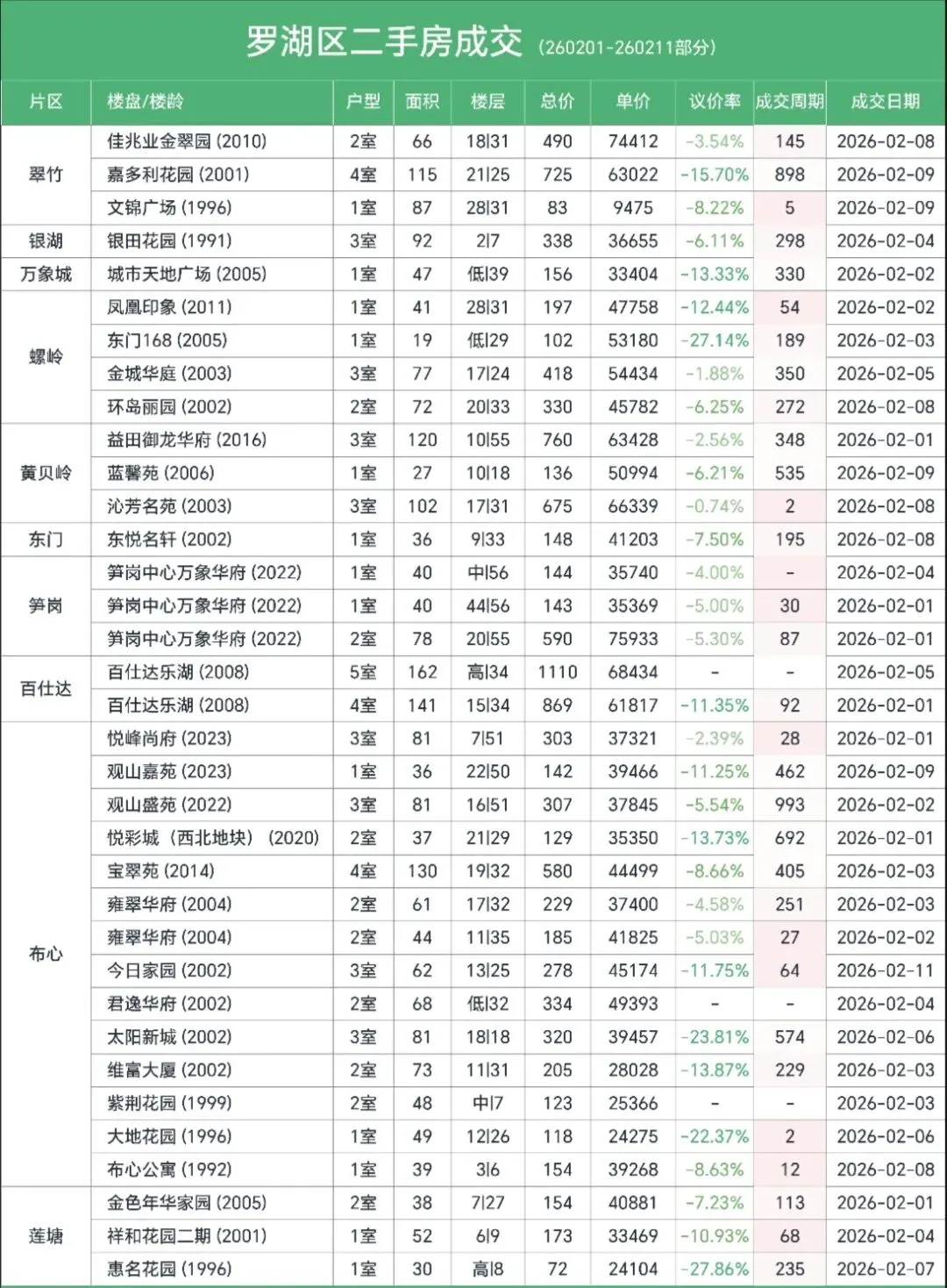 🔹罗湖、龙岗、光明:整体议价率偏高,适合刚需仔细淘笋。